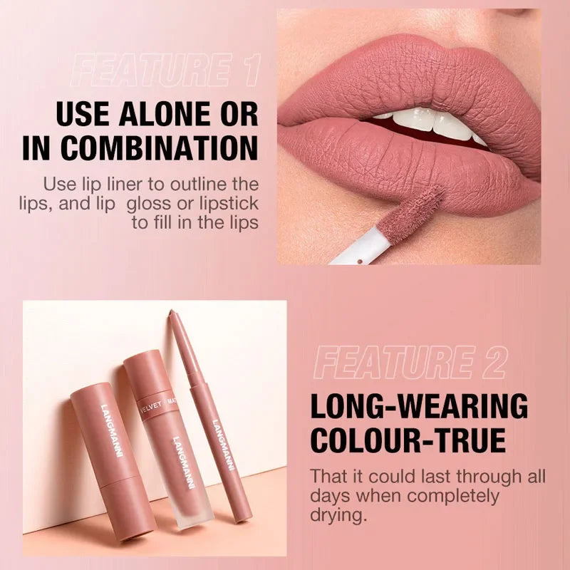 3PCS Matte Lipstick Set Nude Brown Velvet Liquid Lip Gloss Waterproof Non-stick Cup Lip Liner Plumper 24HR Lasting Not Easy Fade